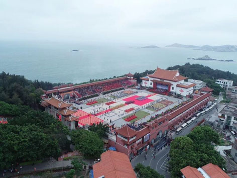 紀念大會后,還舉行了己亥年春祭媽祖典禮等活動。來自臺灣云林北港朝天宮、高雄路竹天后宮等40家臺灣宮廟代表和香港、澳門地區(qū)媽祖信眾,以及阿根廷、泰國、越南、老撾、馬來西亞等國家的媽祖信眾代表近萬人歡聚圣地,同沐福澤,共慶圣誕。9時30分,農歷己亥年春祭媽祖典禮開始,可納2萬人的湄洲島天后宮廣場座無虛席,禮臺中央,媽祖金身端莊肅穆,三獻樂舞畢,8條25米長的彩色巨幅綢帶象征各國民心匯聚的“海上絲綢之路”,涌向媽祖金身,寓意海洋文化與媽祖文化完美融合。旌鼓禮炮聲中,海內外信眾依古制三跪九叩,同謁媽祖,祈愿兩岸和平,民族昌盛,絲路復興。為期六天的紀念媽祖誕辰活動期間,來自各地的120支民俗表演隊4500多人輪番上陣,為海內外媽祖信眾、游客獻上一場精彩紛呈的文化盛宴。