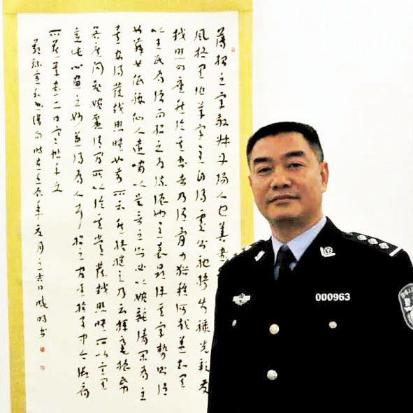研習書法是否會影響本職工作?當被問到這個問題時,雷曉明一邊搖著頭一邊說:文武之道,一張一弛!公安隊伍人才眾多,警營里不僅有打擊違法犯罪的破案能手、維護社會治安的反恐精英,也是書法藝術的藏龍臥虎之地。我們警營里的眾多優(yōu)秀書法家不僅在藝術的道路上展現(xiàn)聰穎和才智,而且將書法藝術在服務公安中心工作中發(fā)揮得淋漓盡致——展示公安工作、服務基層民警、密切警民關系、開展對外交流,書法成為他們工作上的好幫手。