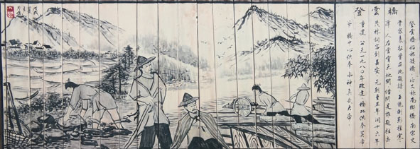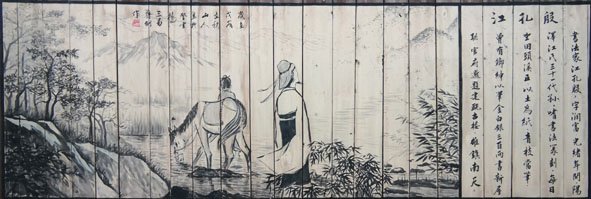 登云橋大概算是最精致最有文化內(nèi)涵的廊橋。橋頭分別都有一個(gè)高高的樓臺(tái)即可以在此品茗觀景,又可以在此賦詩(shī)作畫。橋邊的掛板有幾十副水墨畫,題有解說文字,把建甌小橋一帶的名人雅士、名勝古跡、風(fēng)土人情說個(gè)遍。