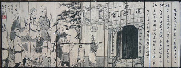 這些圖文并茂的畫,反映名人軼事的有:袁樞著書、村民捕虎、葉京、江文蔚、江禮殷等;反映名勝古跡的有:陽(yáng)澤烈士陵園、江公祠、明清古民居;反映特產(chǎn)和民俗的有:八刀分米粉、岐山廟會(huì)等,可以說小橋鎮(zhèn)的文化旅游景觀節(jié)點(diǎn)與亮點(diǎn)都集中在這里,也可以說是小橋鎮(zhèn)的十里文化旅游景觀走廊的濃縮版或精華版。