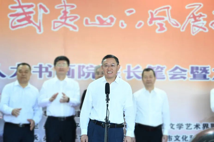 王來文在致辭中表示,福建省文聯和南平市人大常委會共同主辦的本次活動,是繼去年書畫筆會后我省書畫界的又一藝術盛會,是傳承弘揚中華優秀傳統文化的一次生動實踐,是全省文藝界“聽黨話、頌黨恩、跟黨走”向黨的二十大獻禮的一首文藝贊歌。旨在通過藝術活動的形式,深入學習貫徹黨的二十大精神,用深情的筆墨貫徹永遠跟黨走、邁向新征程的情懷,以文藝激活中華優秀傳統文化的生命力,以文藝密切各設區市及平潭綜合實驗區之間的聯系,夯實全省各地市攜手合作、齊肩并進、共贏共享的發展基礎,推進全面建成社會主義現代化強國、實現第二個百年奮斗目標,以中國式現代化全面推進中華民族偉大復興。