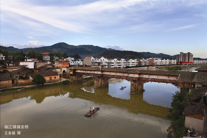 如今已666歲的鎮安橋,雖然歷經多次的水和火的洗禮,依然風姿卓越。要和小仙女比美,閩北廊橋很多,大多濃墨重彩,只有臨江鎮安橋不涂脂抹粉,仍然叫六宮粉黛無顏色而力壓群芳。福建省省級文物保護單位,大明朝洪武年間建設的純杉木斗拱橋鎮安橋,在清澈見底的溪流映襯下,美輪美奐。金秋十月,駐足鎮安橋,品桂花茶,吃桂花糕,觀賞丹桂樹紅遍的臨江溪兩岸美景,在涼爽的秋風里,沐浴著遠近飄過的陣陣桂清香,小七會后悔下嫁臨江章大嗎?后悔的應該是她的六個姐姐吧!