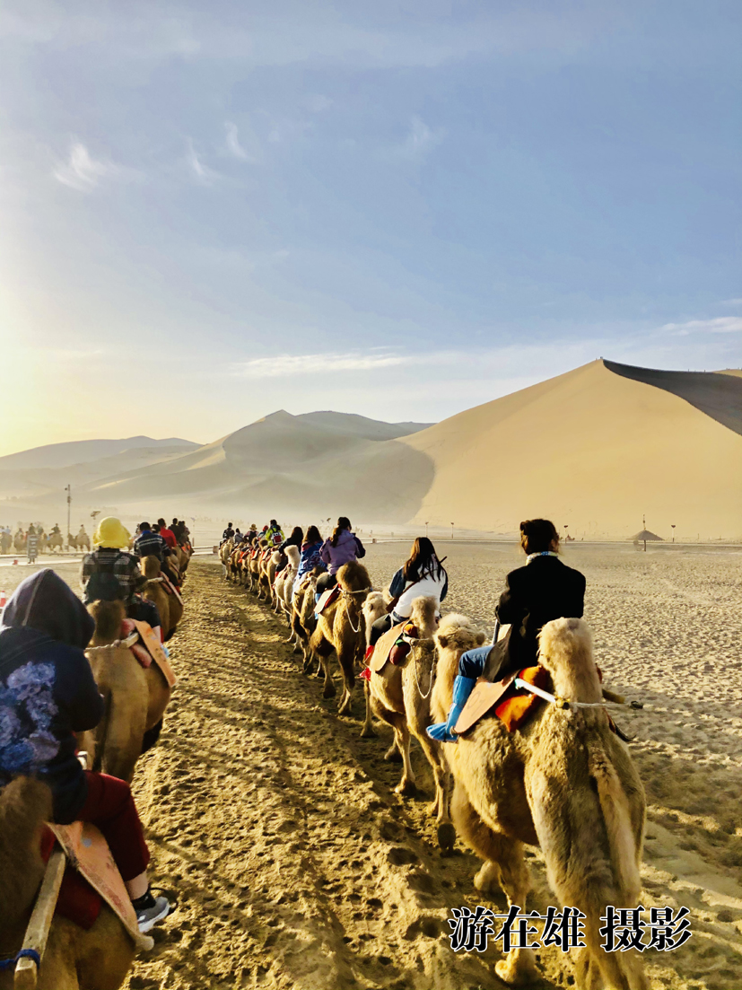 西域春晚,5月樹上的枝芽剛剛蘇醒,路邊的駱駝刺才露出新芽,正逢春日暖陽,微風拂面,遠方的祁連山下漂浮波狀的氣浪。心中充滿渴望和期待,輕裝上路,不多時,便置身于戈壁曠野中。